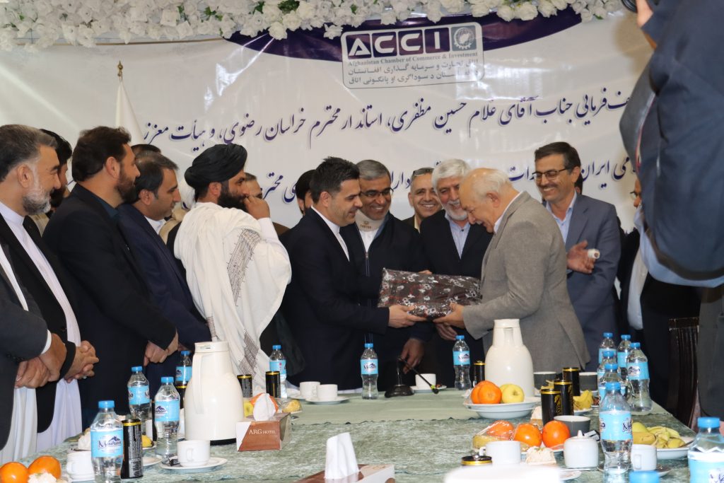معاون امورولایت های اتاق تجارت و سرمایه گذاری محترم فیض احمد "خوافی" که در رآس یک هیات بلند پایه به هرات سفر نمود است در آخرین نشست استاندار خراسان رضوی که با حضور والی محترم هرات ، اتاق تجارت وسرمایه گذاری هرات بازرگانان افغان وایران در مقر این اتاق دایر گردید روی کمیته های چند گانه فیصله صورت گرفت.