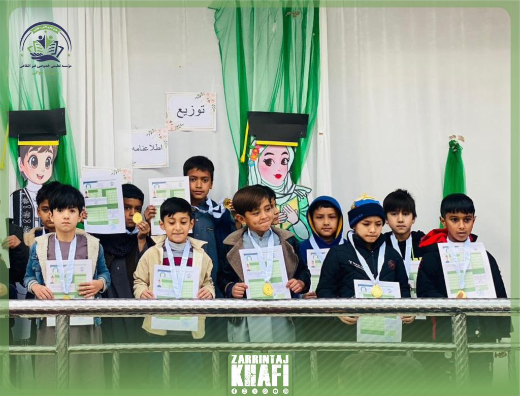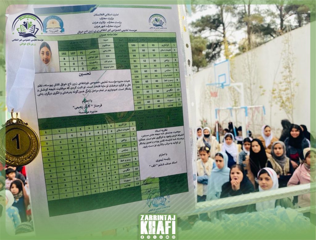 مکتب زرین تاج خوافی در یک فضای پر از شور و شوق علمی، طی مراسمی ویژه، اطلاعنامههای پایان سال تعلیمی را برای شاگردان صنوف اول تا ششم توزیع نمود.