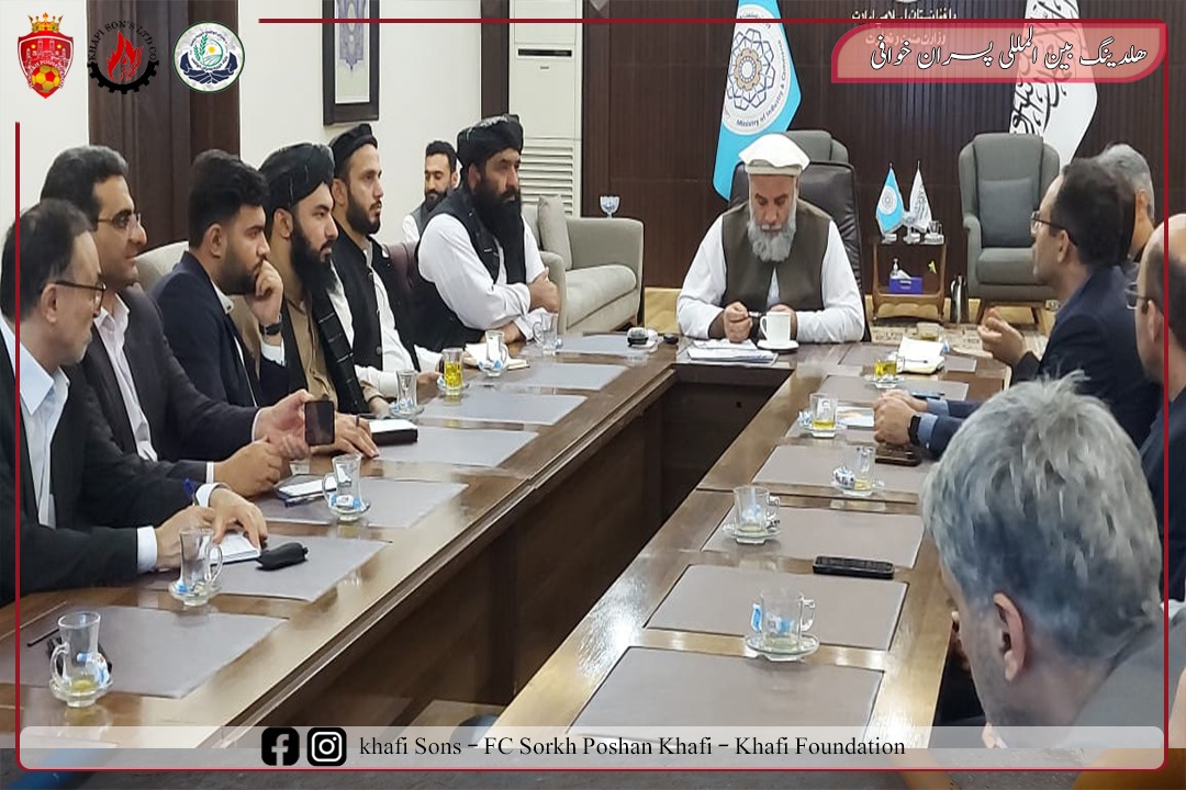 محترم معین خوافی اتشه تجارتی امارت اسلامی همراه با تیم از سرمایه گذاران ایرانی امروز درنشستی با وزیر صنعت وتجارت، وزیر انرژی و آب و رئیس خط ریل وزارت فواد عامه افغانستان گفتگو نمود. آقای خوافی همراه با تیم متذکره افزود که آنان آماده سرمایه گذاری روی پروژه های عام المنفعه همچون ایجاد سیستم برق خورشیدی و بادی بمنظور تحرک بیشتر و ایجاد زمنیه اشتغالزایی درافغانستان هستند.